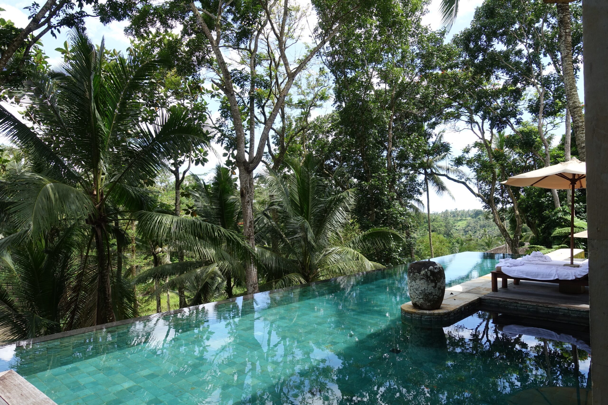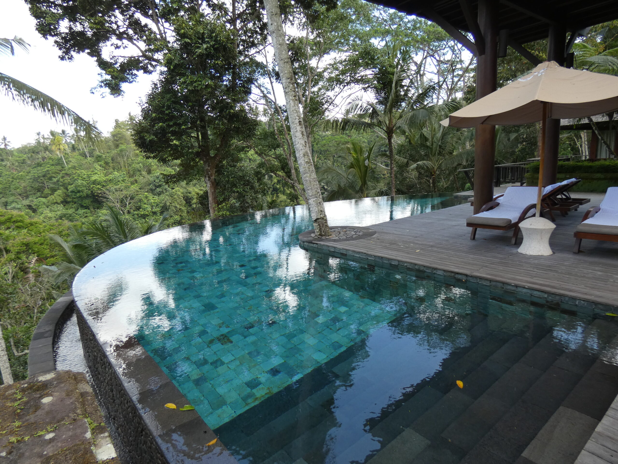 Bali Green Sukabumi was applied in some pools at Como Shambhala Estate, Bali. The stone’s color matches with surrounding natural beauty foliage. This stone is commonly used for the pool tiles in any hotel and resort. Besides the beautiful natural color, this stone has more benefits such as the substance contained. It is a Zeolite substance, a substance that can destroy microorganisms in the water so the pool will be clean and purified. Also finish of the stone mostly used is Honed finish, this finish has a smoother surface than others but still has the anti-slip feature. The surface makes the guests comfortable when inside the pool.