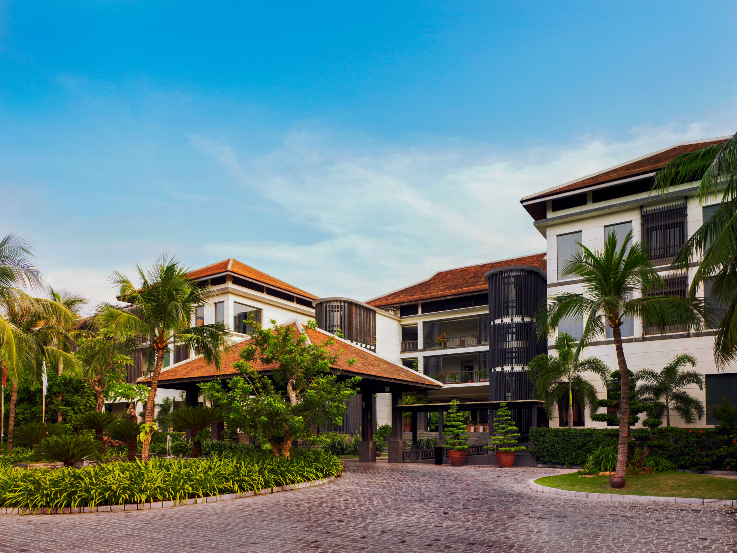 Andesite is known as a hard stone because of its good density. This stone is the best choice to use on high-pressure area such as carport, driveway, car entrance, etc. Anantara Mui Ne Resort use Bali Andesite stone for entrance way. It considered the usage of this area and the specification stone that matches it. Recommend using Bali Andesite stone with Cobble type as this type can provide for 3 to 5 cm which is good on high-pressure area.